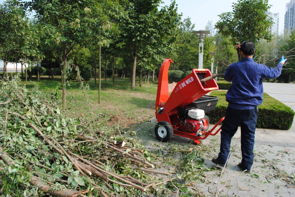 GTS1300進料斗寬大,側(cè)枝也可一起進入,保障了操作的高效率。樹枝(直徑最大10cm)可以快速被切削成細小均勻的碎木片,從高置出料口噴出,便于收集。基于安全考慮,此款機器配有按壓式急停開關(guān),能使機器立即停止運行。